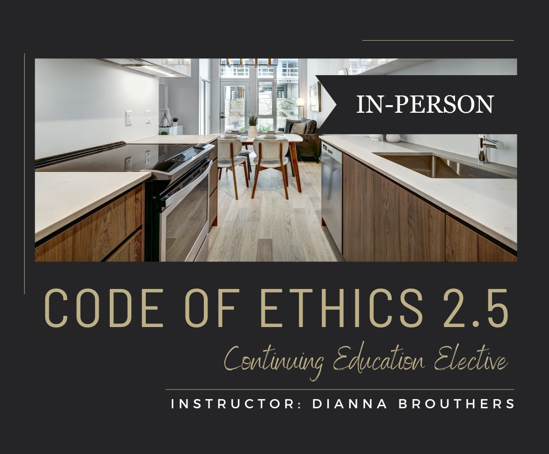 This course is designed to meet NAR’s requirement of 2.5 hours of ethics training as well as the need for a 2-hour continuing education course. This course give an update to changes to the Code as well as a discussion of several “sticky situations” that are currently being seen in the marketplace.
